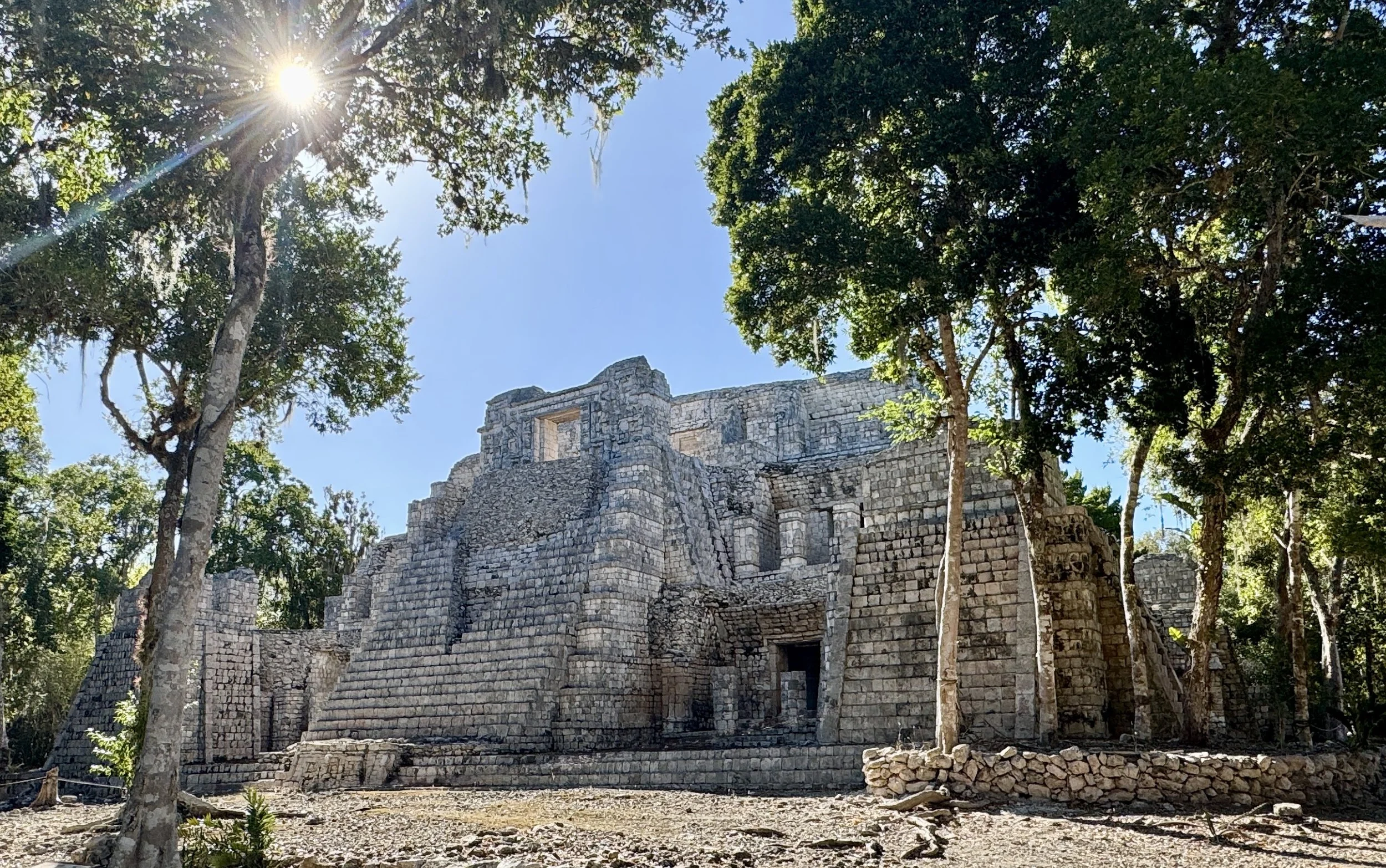 The largest and most structured site in the Chenes region, with multi-level buildings and a clear internal layout. The architectural anchor of the route, deep in the Campeche forests.